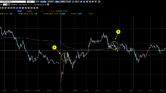 朝方は前日に反発した動きが続き、買いが優勢で取引が始まりました。ニューヨークダウ平均株価は一時480ドルを超える上昇を見せる場面もありましたが、米国10年物国債の入札が低調だったことから利回りが上昇し(価格は低下)、株式の相対的な割高感が意識され、下げに転じました。その結果、不安定な値動きが続きました。特に、ハイテク株比率の高いナスダック市場では、アーム・ホールディングスやエヌビディア、アムジェンなどの株価が下落しました。