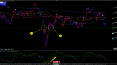 4時間足の値幅抵抗帯に裏タッチで下落。その後・・・1時間足の値幅抵抗帯にタッチで反発。このような場合、これまでの下落一辺倒の波動に変化が出てくる予兆です。パターンで覚えましょう。
