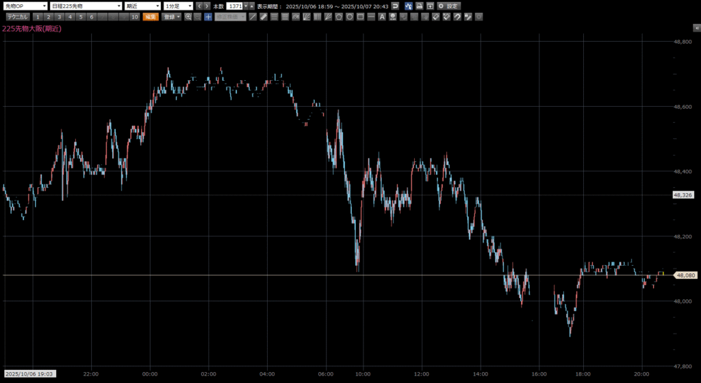 本日の日経先物の注目ポイントは、上 48680円。 下 48420円。