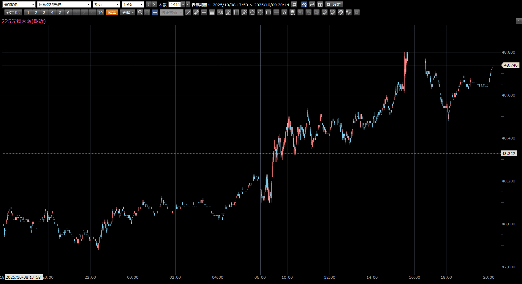 本日の日経先物の注目ポイントは、上 49010円。下 48300円。
