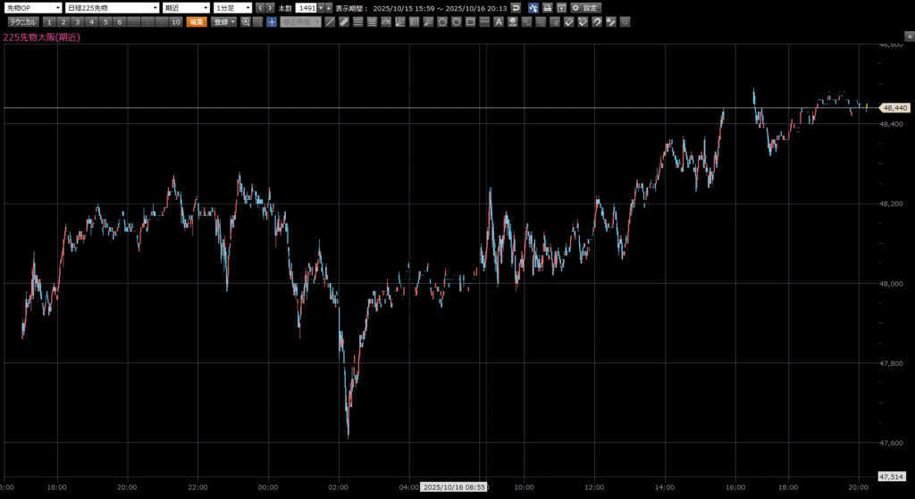 本日の日経先物の注目ポイントは、上 48110円。下 47710円。