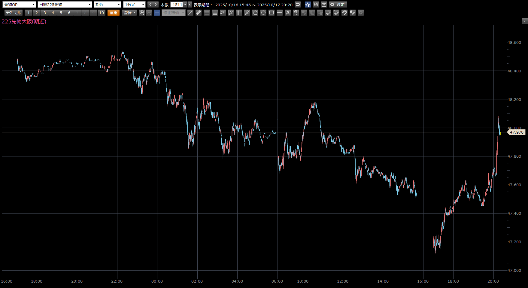 日経先物は首相指名選挙前に高市ラリーに戻っています。