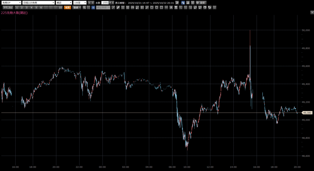 本日の日経先物の注目ポイントは、上 49500円。下 48900円。