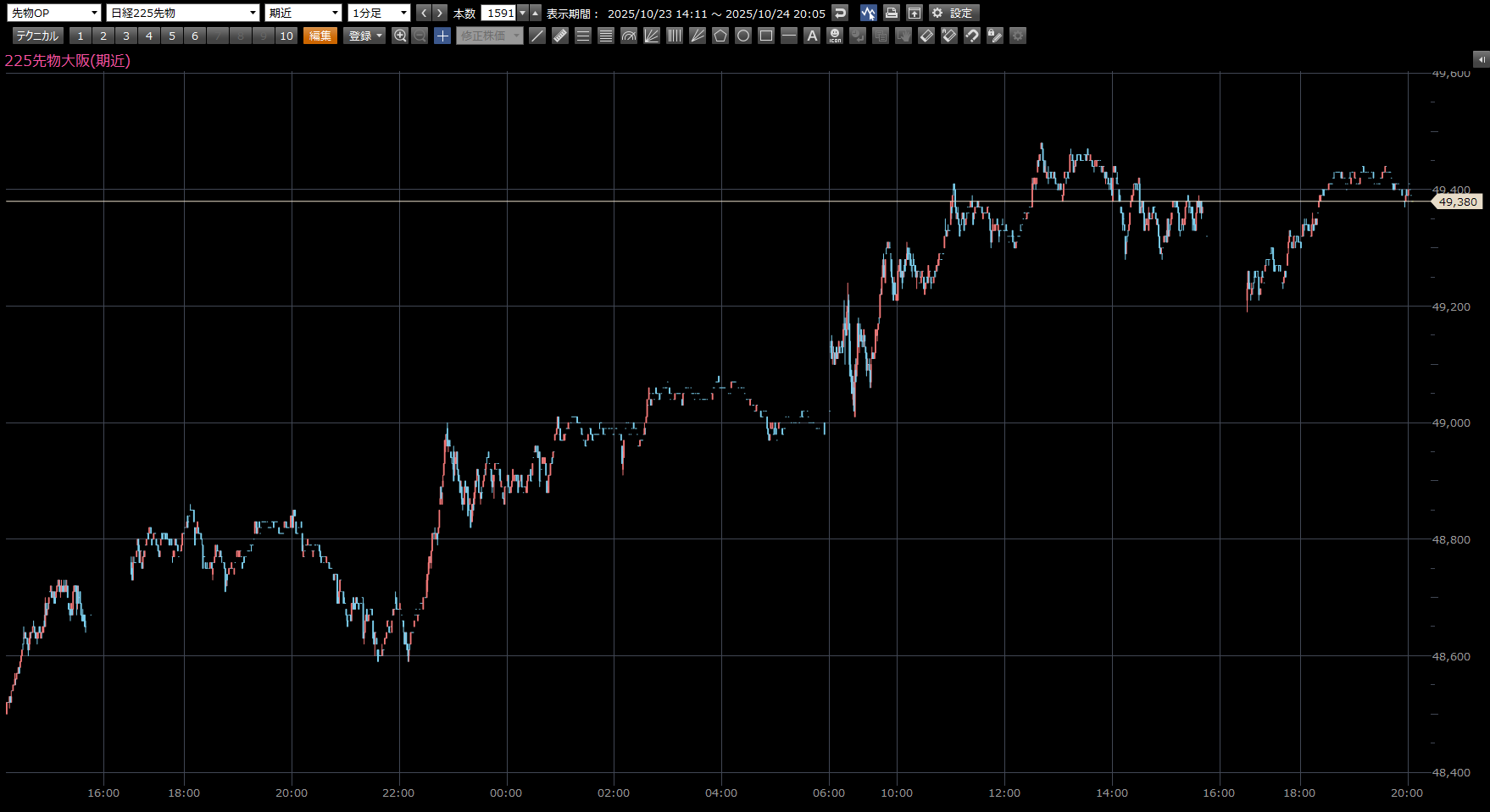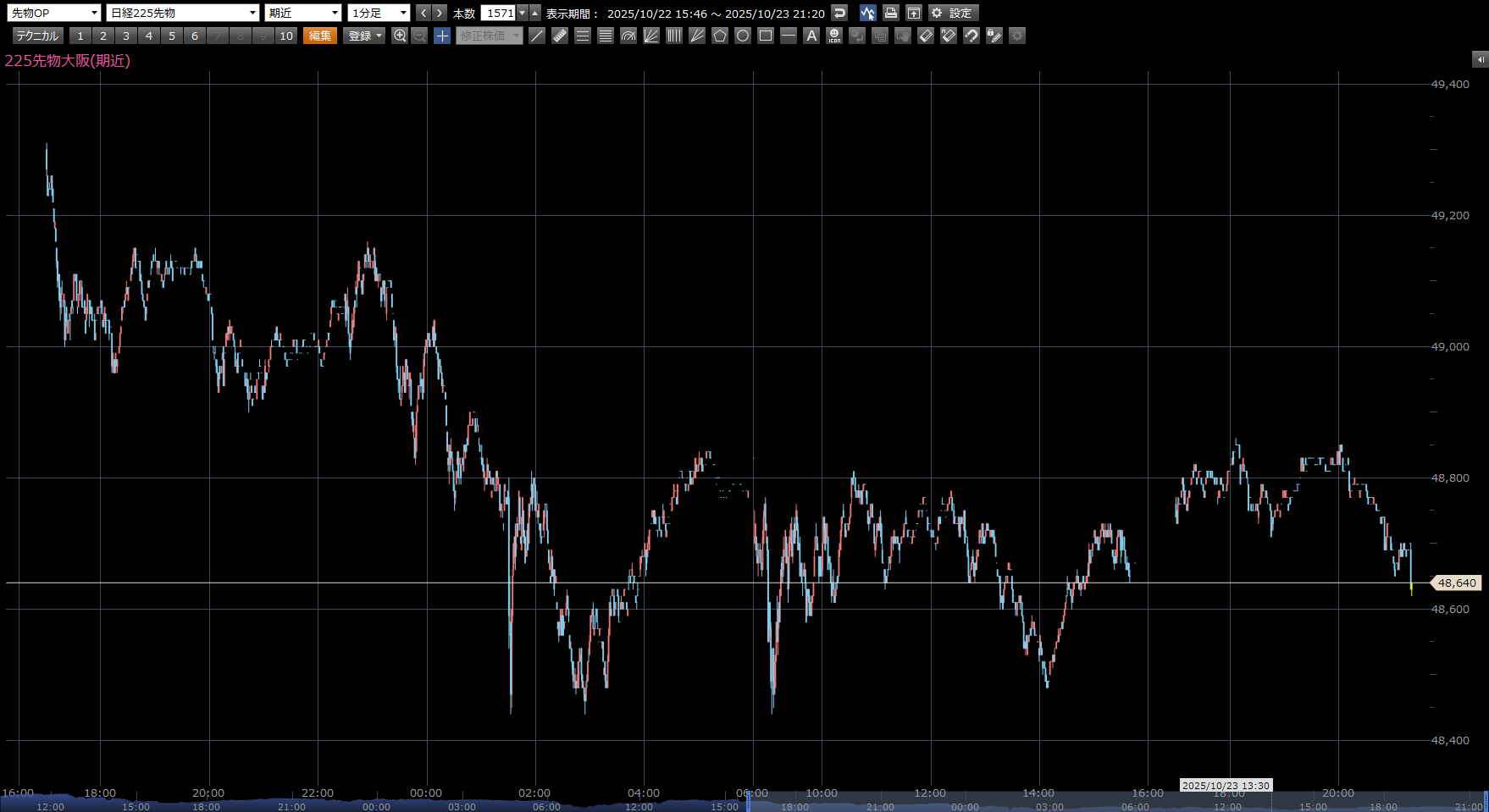 本日の日経先物の注目ポイントは、上 49220円。 下 48830円。