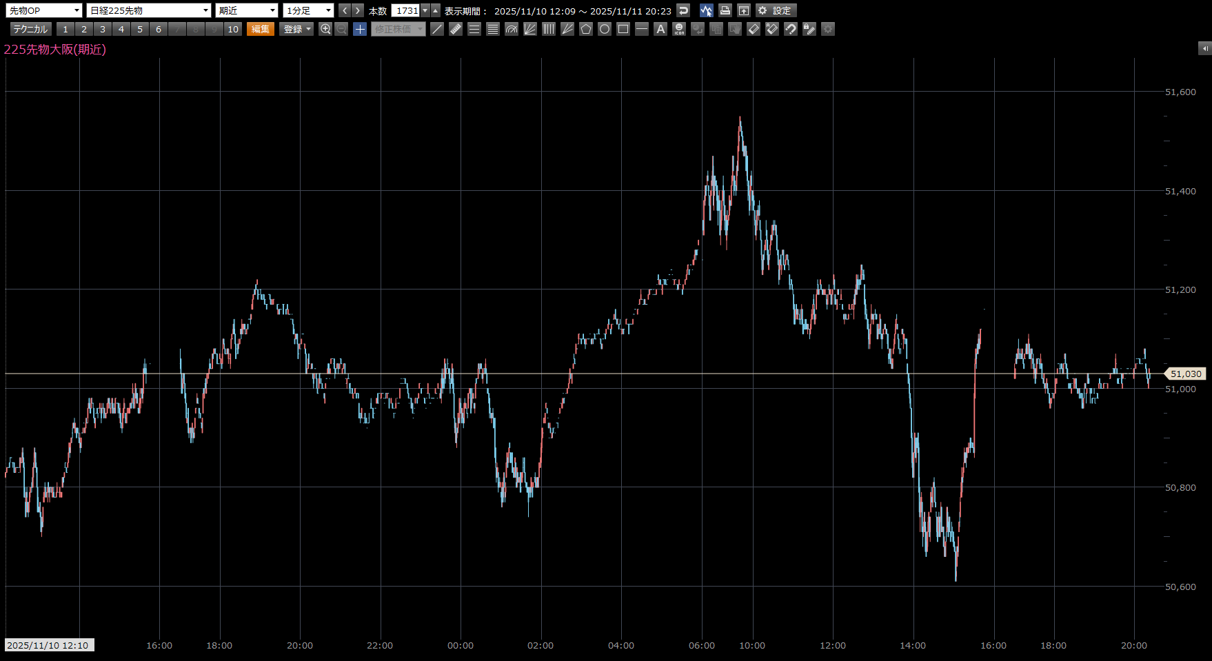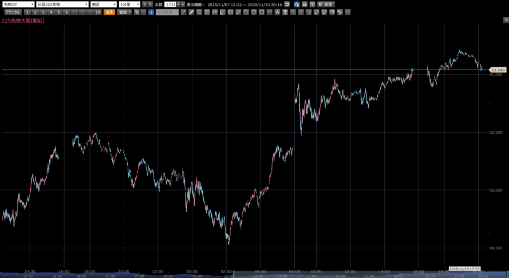 本日の日経先物の注目ポイントは、上 50930円。下 50480円。