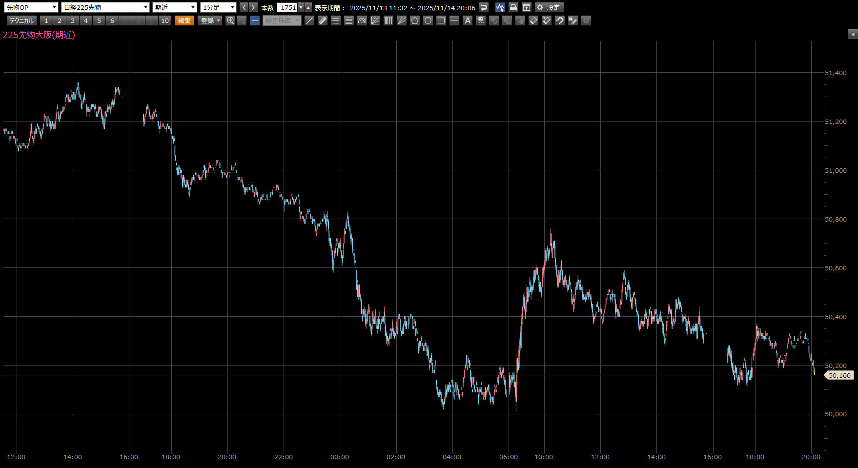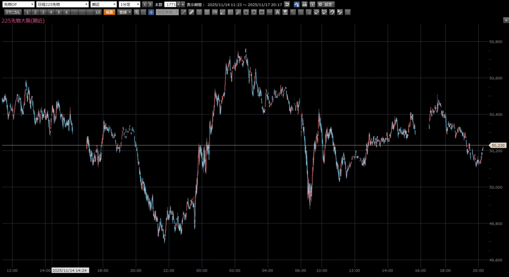 朝一コメント:フェニックス 日経225先物トレード倶楽部 X Facebook LINE コピー 2025.11.17 本日の日経先物の注目ポイントは、上 5760円。下 50090円。 日足の下げ波を抜けば需給改善。今はその下げ波が一番接近しているタイミングです。(二番底を形成中) エヌビディアの決算が控えるなど、上値を追うには少し厳しいタイミングです。買いは押し目のみ対応。上値を追った買いは避けましょう。 50100円から50090円が下値抵抗帯。49940円まで想定しながら押し目買い対応。
