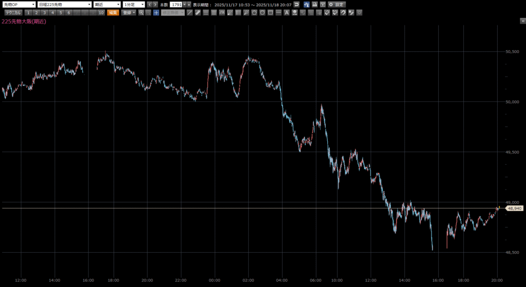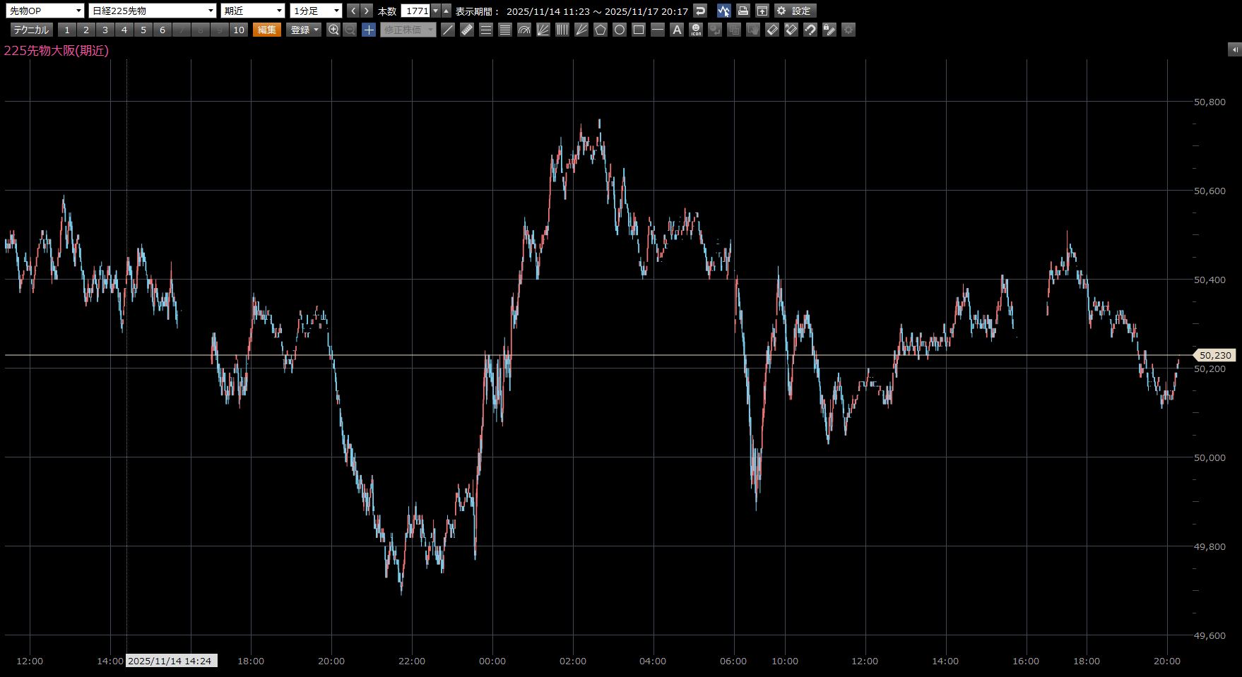 本日の日経先物の注目ポイントは、上 50040円。下 49360円。