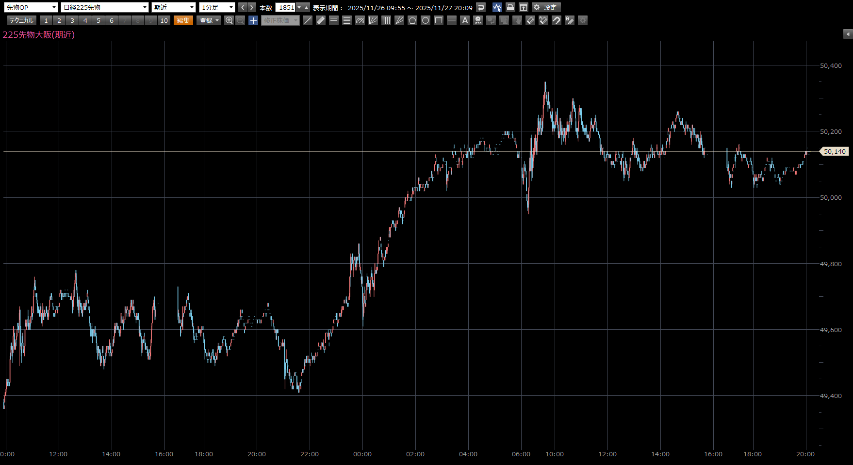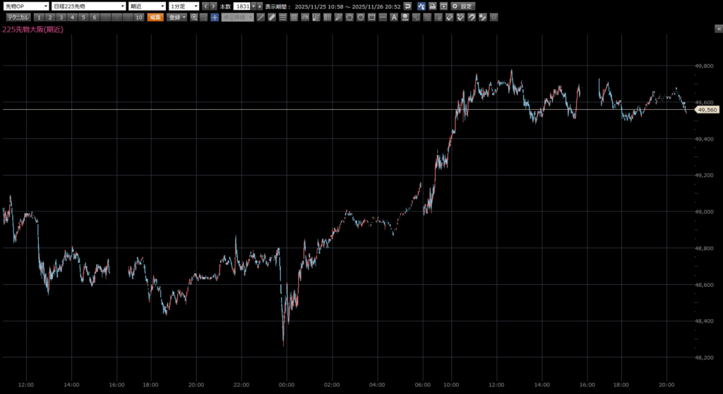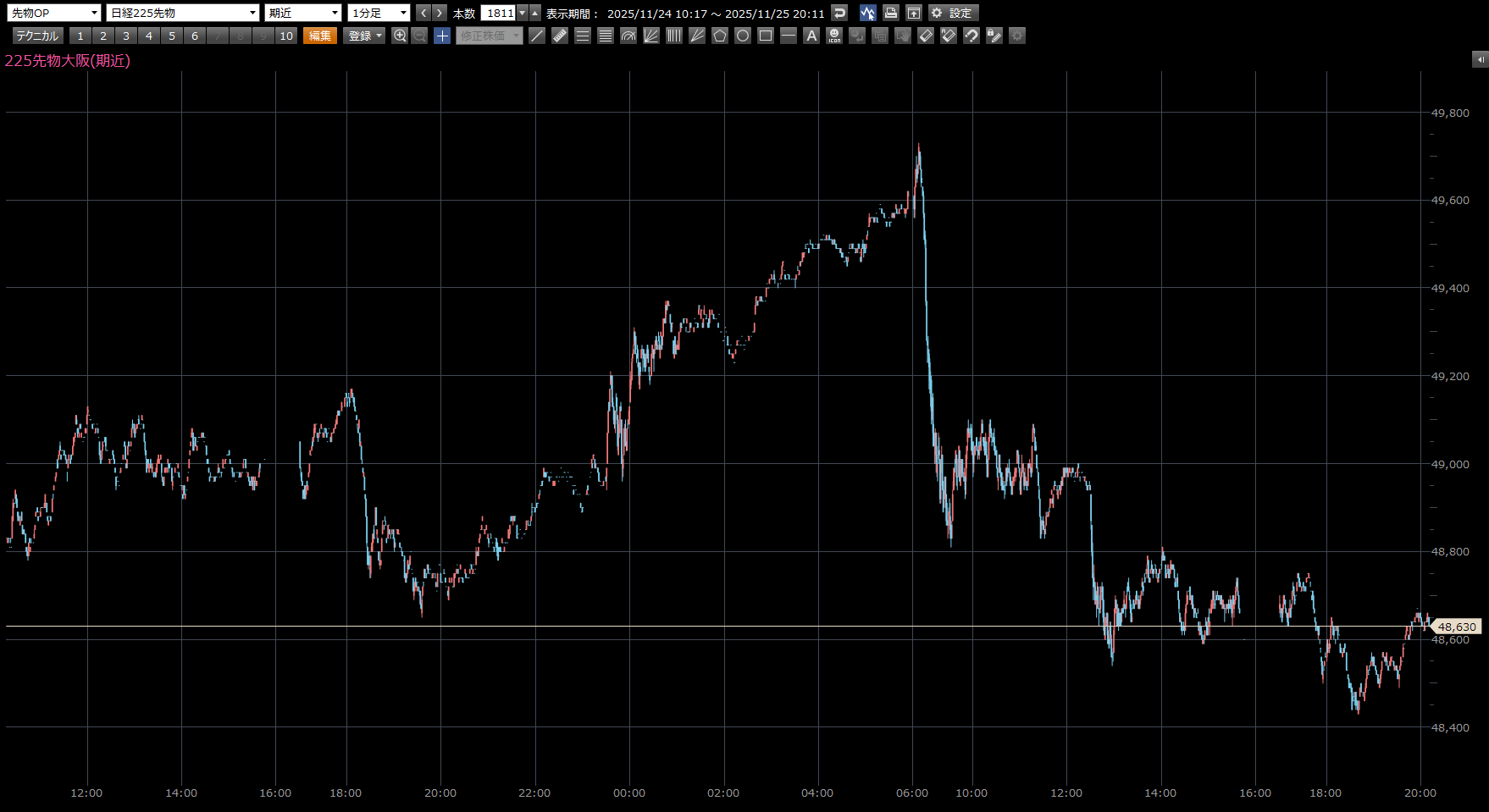 本日の日経先物の注目ポイントは、上 49250。 下 48630円。