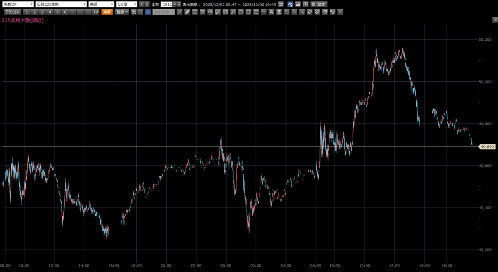 本日の日経先物の注目ポイントは、上 49820円。下 49130円。