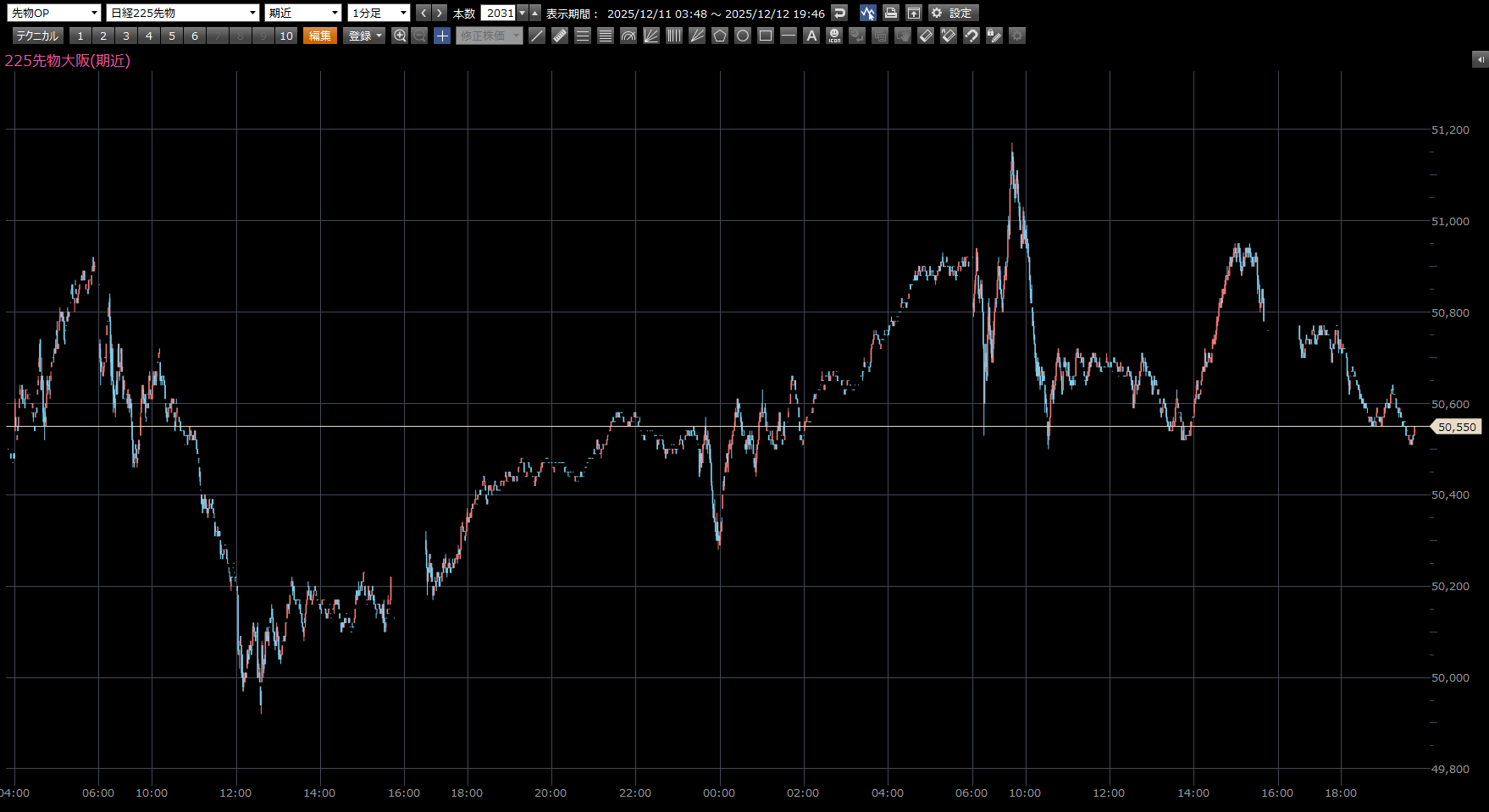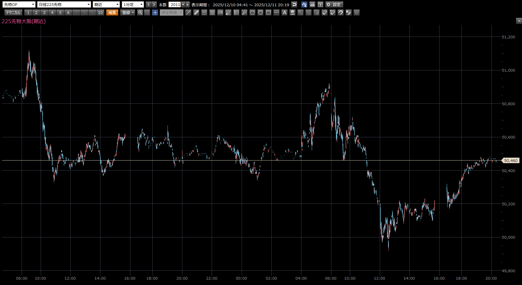 本日の日経先物の注目ポイントは、上 51330円。下 50500円。