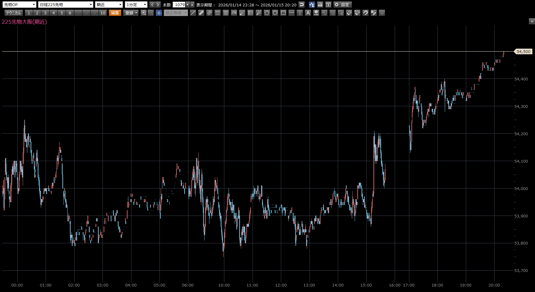 本日の注目ポイントは、上 54290円。下 53670円。