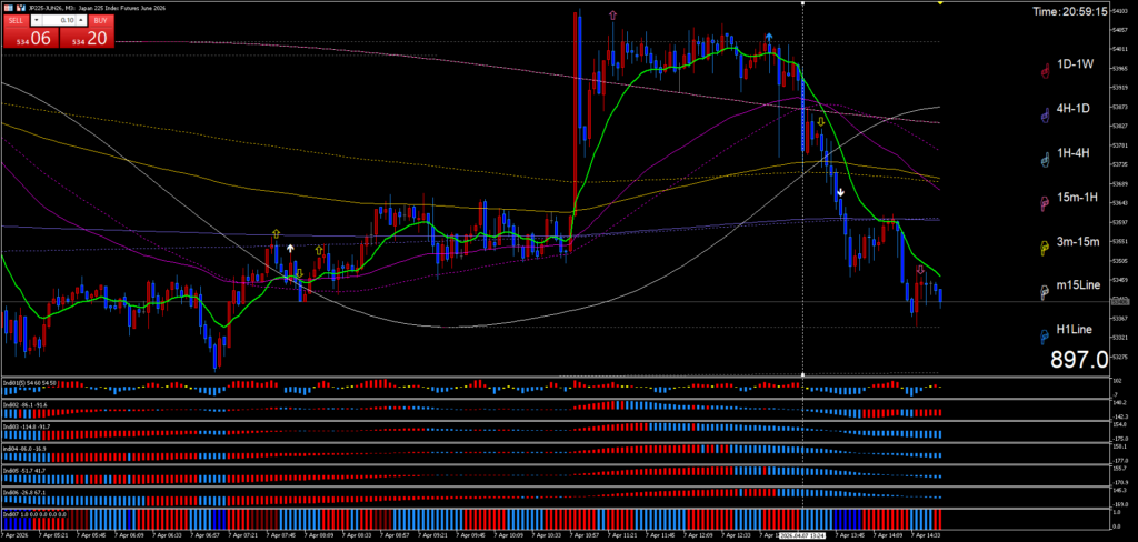 本日の日経先物の注目ポイントは、上 54120円。下 53460円。