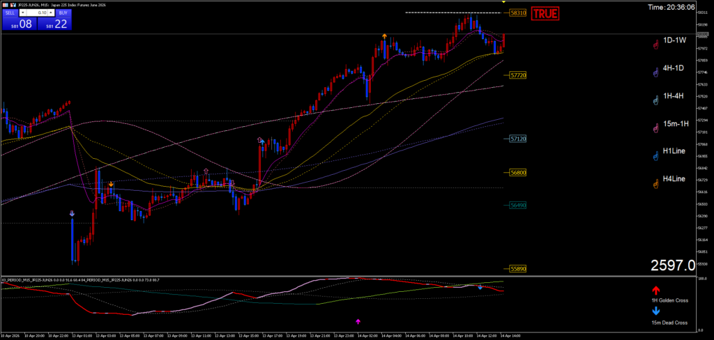57840円~57930円が第一上値抵抗帯。
