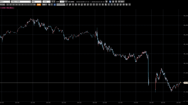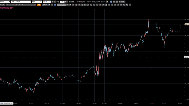 日経225先物トレード倶楽部 朝一コメント:フェニックス NYダウは91ドル安と続落。 S&P500は8営業日ぶりに反落。米政府機関の閉鎖が長引いており、雇用関連の経済指標などの発表がないため、流石に材料難から利食い売りに押されました。ただ、10月FOMCでの利下げの織り込みは続いており、金利が安... 2025.10.08 日経225先物トレード倶楽部